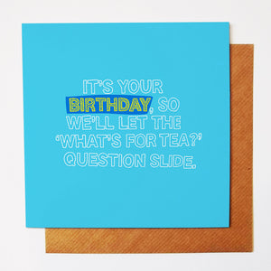 Nobody wants to cook the tea on their special day. Make sure they know it by sending them this funny birthday card.
